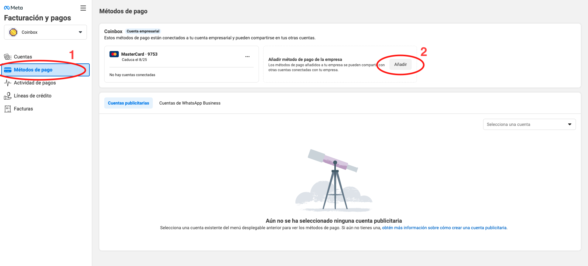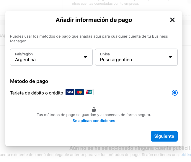 Ahora lo que queda es simplemente darnos acceso para que podamos configurar los activos comerciales de la empresa en Meta.